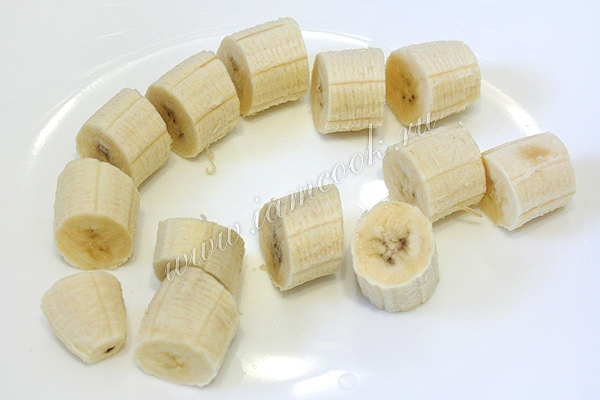 Разрежьте бананы на небольшие кусочки.