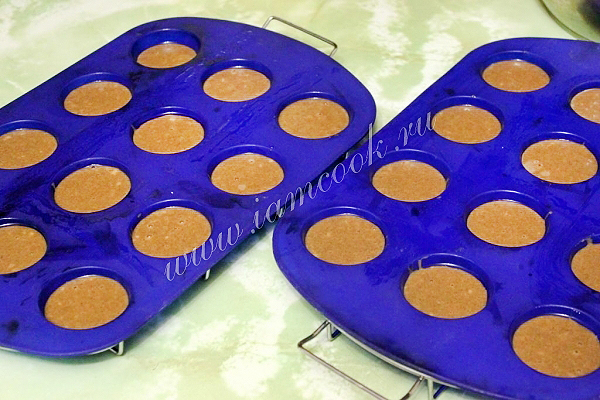 Выпекайте в разогретой духовке при 170 градусах около 20 минут, но время зависит от размеров формочек.