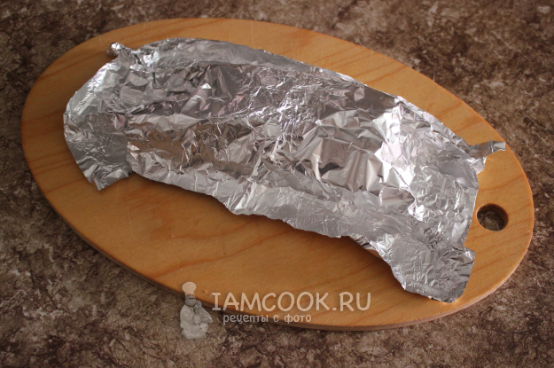 Затем уложите стейк на деревянную поверхность и укройте фольгой. Пусть полежит так минут пять.