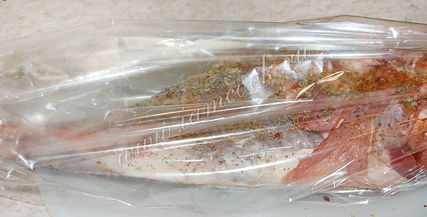 Обработанную баранью ногу аккуратно упаковать в рукав, завязав со всех сторон. Сделать проколы на пленке, чтобы в духовке пакет для запекания не разорвало и не забрызгало всю духовку.