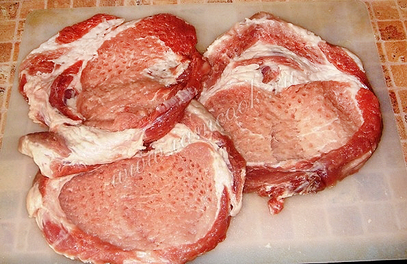Мяса отбить, затем посолить и поперчить по вкусу.