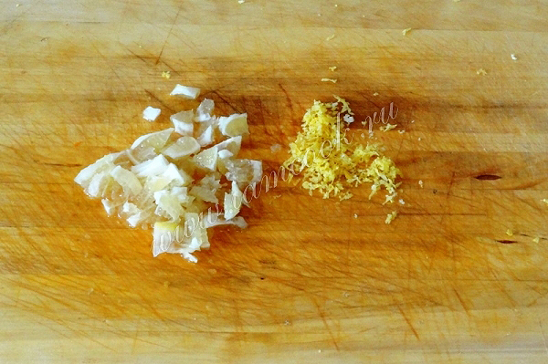 7. С четвертинки лимона снять цедру. Мякоть мелко нарезать.