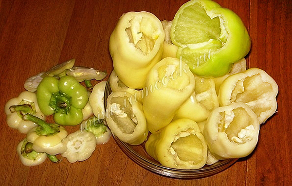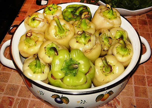 Грунтовые перцы как следует вымыть, срезать хвостик и очистить от семян.