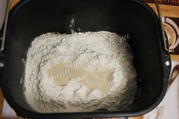 Загрузите все остальные ингредиенты ,но дрожжи в последнюю очередь - сверху.