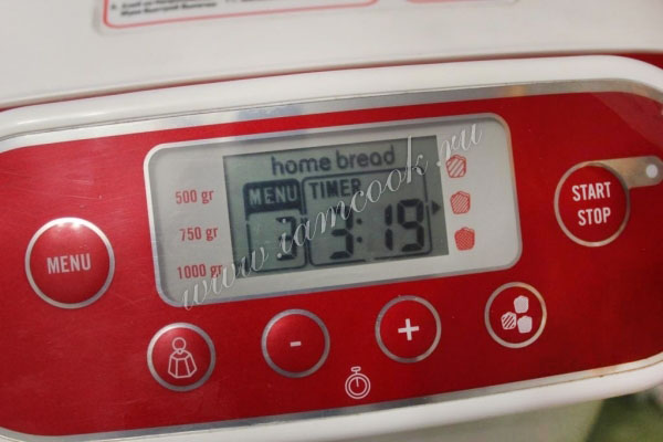 Установите режим "французский хлеб", цвет корочки и массу 1000 г.