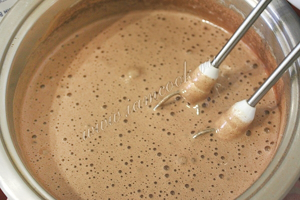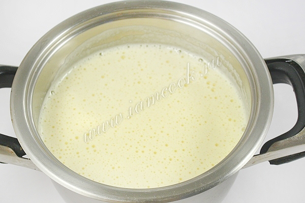 Приготовьте бисквит. Взбейте хорошо яйца и не прекращая взбивания всыпьте тонкой струйкой сахар.