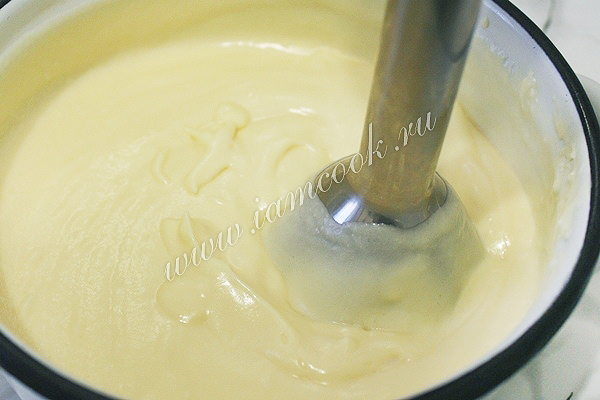 Масло взбейте с сахарной пудрой и сгущенным молоком.