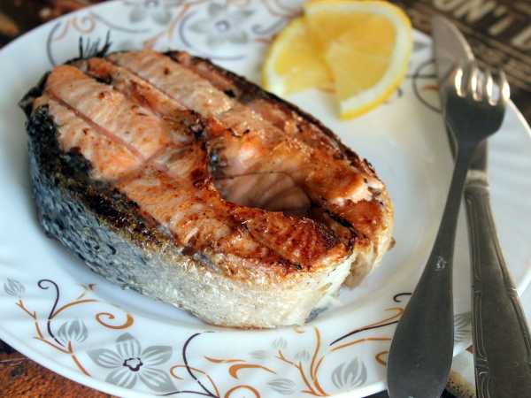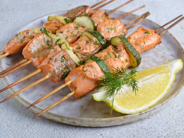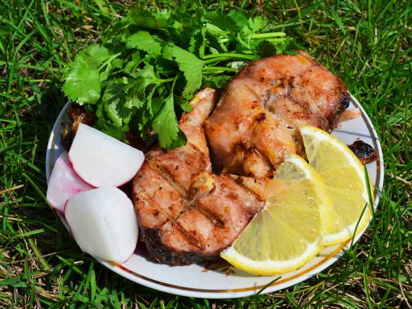 Обжаривать шашлык из сёмги с каждой стороны по 2-3 минуты.