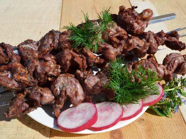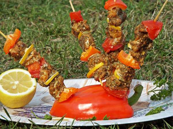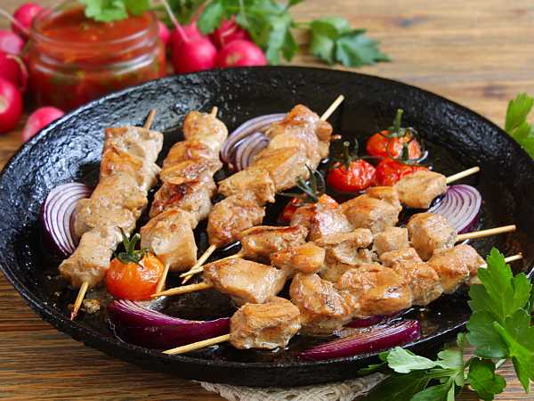 Шашлычки посыпать солью, перцем и специями.