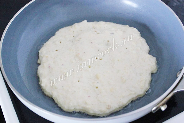 Жарьте картофельные блины на сковороде с растительным маслом с двух сторон.
