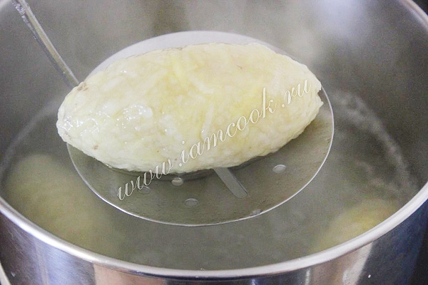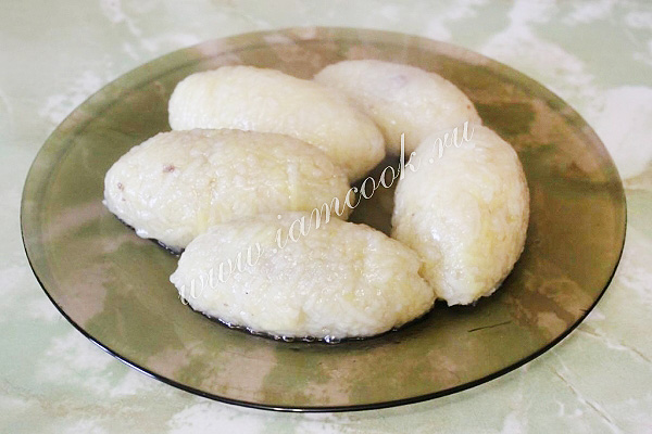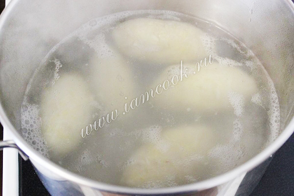 Отварите цеппелины в кипящей, умеренно подсоленной воде, забрасывайте их деликатно и по одному, чтобы они не слиплись. Повторюсь, что с готовым фаршем их достаточно варить 5-7 минут.