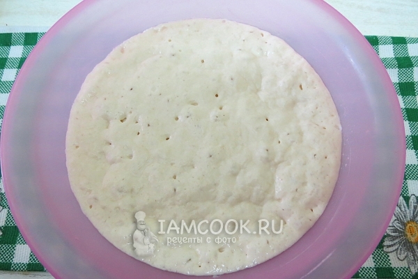 Когда опара поднимется шапочкой и пузыри на ней начнут лопать, она готова.