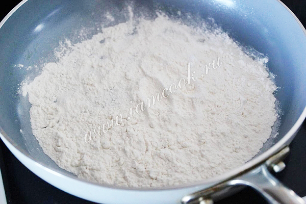 Муку подсушите на горячей сковороде, не жарьте!
