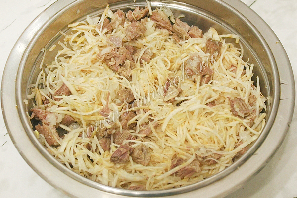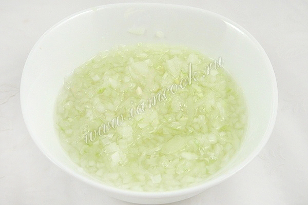 Смешайте лук, сельдерей и мясо. Посолите по вкусу.