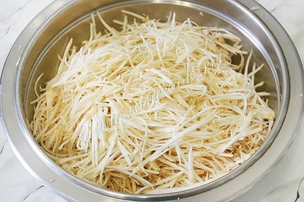 Сельдерей очистите и натрите на тёрке для корейской моркови.
