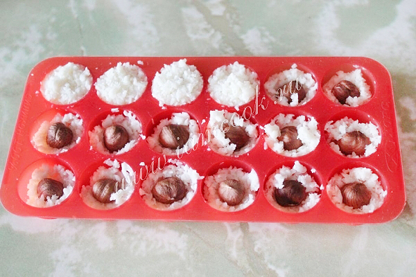 Сформируйте конфеты при помощи форм или вручную, положив внутрь орешек.