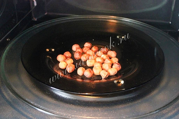 Подсушите фундук в духовке, на сковороде на плите или в микроволновке.