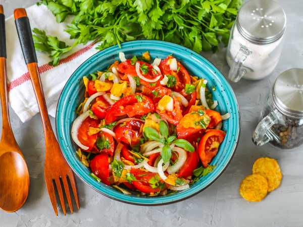 Состав ингредиентов салата уже поднимает настроение, не так ли? Полезный, вкусный, сочный салат отлично подойдёт и для разгрузочного дня, и для семейного обеда, и для детей. Салат из моркови, яблок и лука хорош и с лимонно-медовой заправкой, и со сметанной, и даже просто с растительным маслом.