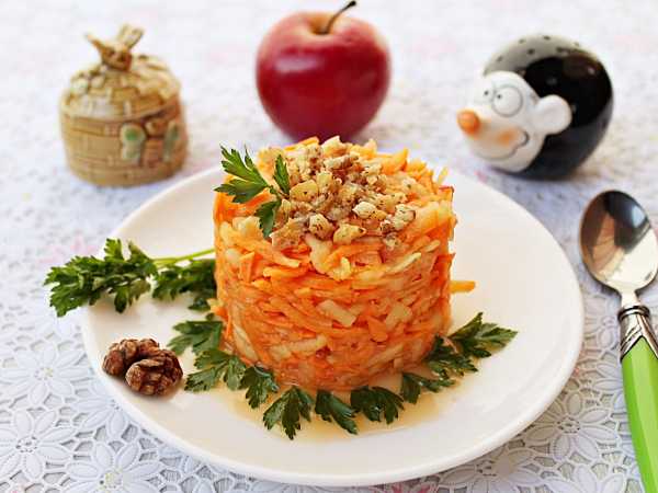 Сочный, полезный и очень вкусный салат из моркови, яблок и лука непременно придётся вам по душе! Тем более, что готовить его можно в любое время года! Приятного аппетита!
