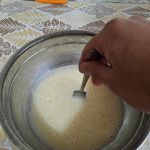 Частями ввести дважды просеянную муку. Тщательно перемешивать после каждой добавленной части.