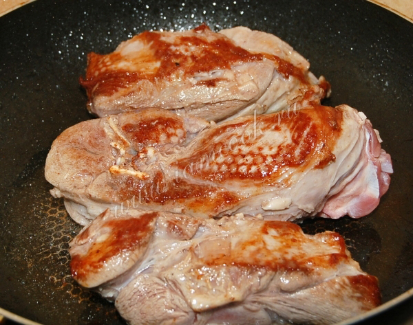 Обжаривать мясо до румяности с обеих сторон.