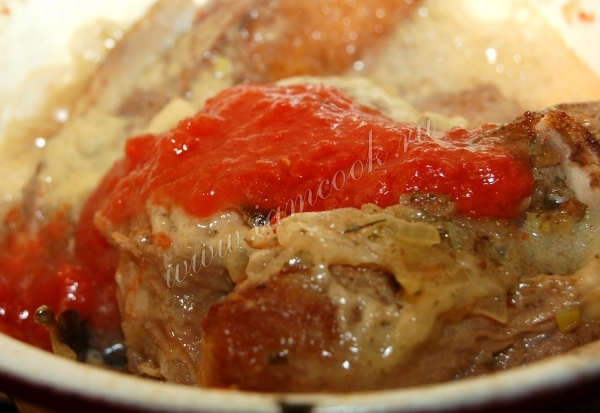 Через 30 минут можно добавить немного томатного пюре.
