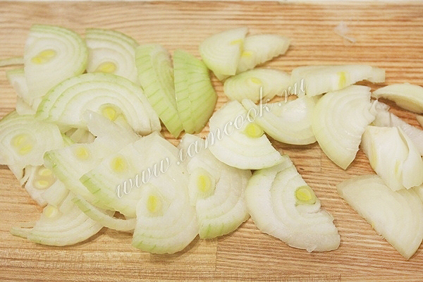 Лук нарежьте полукольцами.