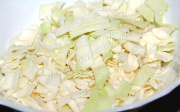 Затем добавим свежую капусту, нарезанную небольшими кусочками.