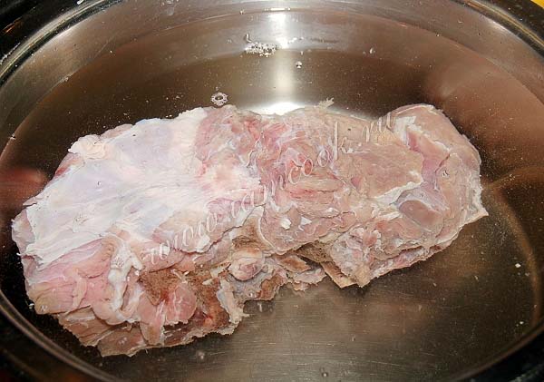 Мясо помыть, залить холодной водой, довести до кипения, снять пену и варить 1, 5 часа. Мясо должно вариться долго, тогда суп получится с более насыщенным вкусом, а мясо будет мягкое и нежное.