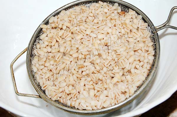 Перловую крупу отваривать нужно отдельно. Для этого положить крупу в небольшой ковшик, залить горячей водой и варить 30 минут. Перловая крупа должна быть почти готовая. Обязательно промыть готовую перловку под проточной холодной водой и затем разместить в сито, чтобы лишняя вода стекла. И уже в таком виде добавить в кастрюлю с супом.