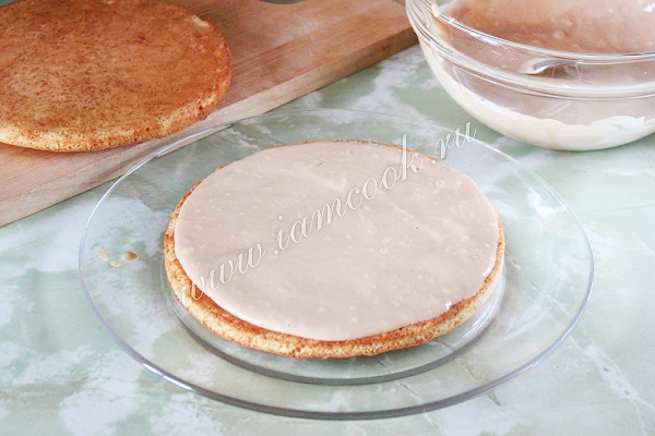 Соберите торт: промажьте коржи и торт со всех сторон кремом.