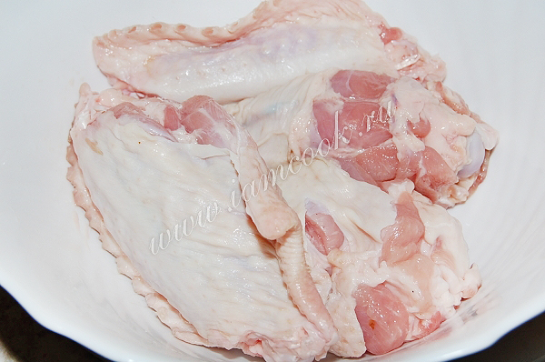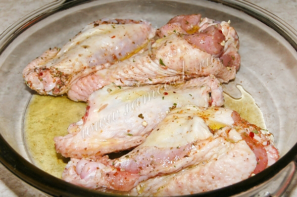Крылья индейки разделить по суставчикам, вымыть и слегка обсушить.
