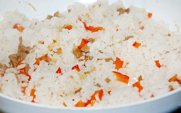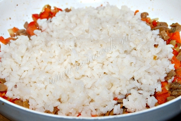 Гарнир из риса с грибами получается очень вкусным и питательным, его можно подавать как с основными блюдами, так и с различными домашними соусами.