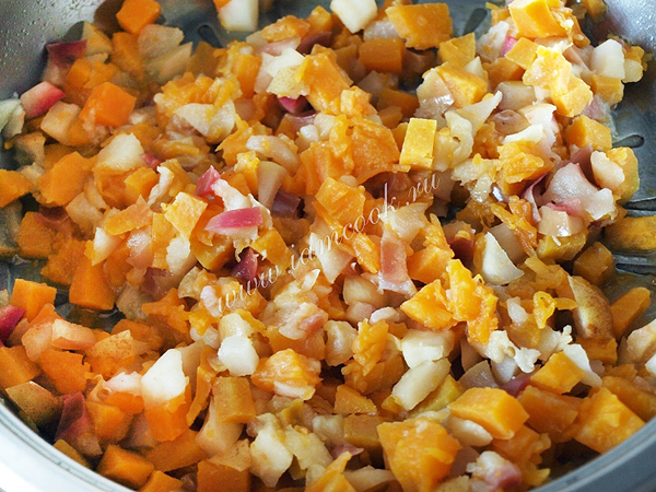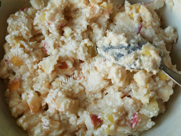 Тыкву с яблоками остудить и добавить творог. Перемешать с помощью блендера.