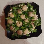 В форму выложить шампиньоны шляпками вниз. Нарезать петрушку.