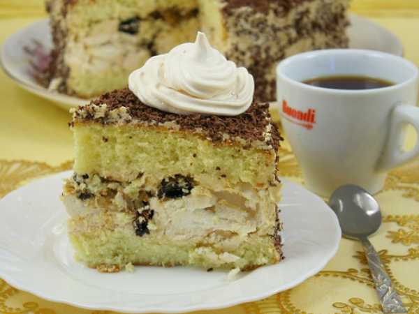 Вот так выглядит приготовленный в мультиварке бисквитный торт в разрезе.