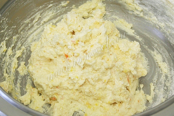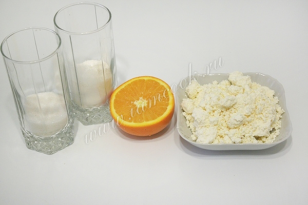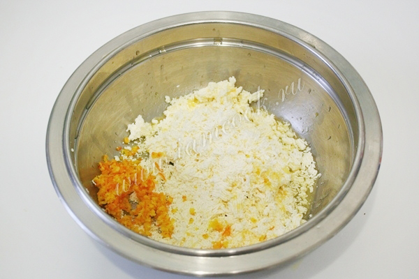 Сок апельсина выдавите в творог. Туда же добавьте апельсиновую цедру.