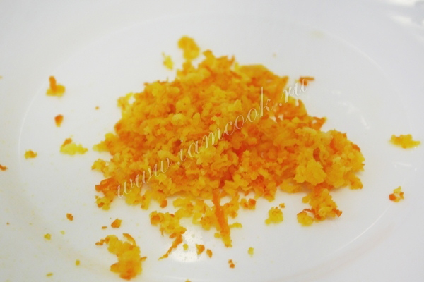 Кожуру апельсина потрите на мелкой терке. Я использовала кожуру всего лишь с 1/4 части апельсина, а вы ориентируйтесь на свой вкус.