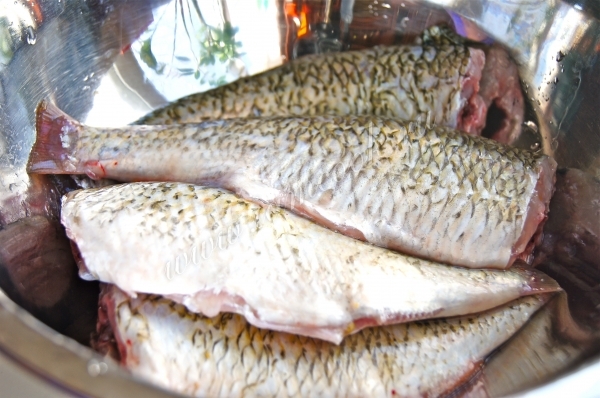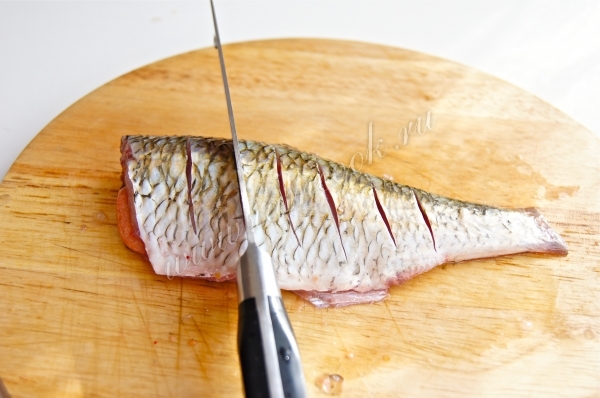 Рыбу очистила от чешуи, удалила внутренности, голову и плавники. Тщательно промыла и обсушила.
