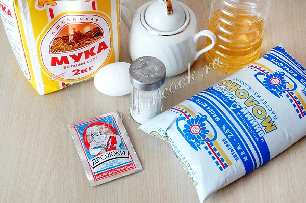 1. Необходимые продукты: пшеничная мука, яйца, молоко, дрожжи, подсолнечное масло, соль, сахар.