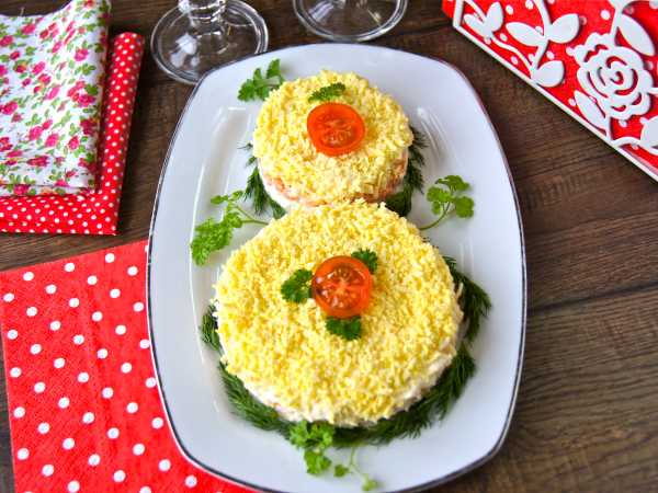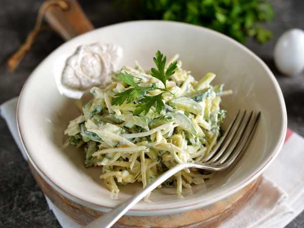 Выложить майонез выбранной вами жирности, посолить и поперчить. Аккуратно перемешать все содержимое емкости.