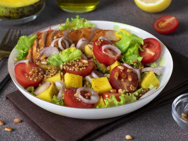 Салат с черносливом, курицей и огурцом не калориен, вкусен и сочен, обладает легким весенним ароматом, особенно если вы добавите в блюдо вместо обычного репчатого лука зеленый лук. Он идеально сочетается по вкусу с отварными куриными яйцами и свежим огурцом. Подавать салат можно как в будни, так и на праздничный стол, нарезая и оформляя каждый раз по-новому.