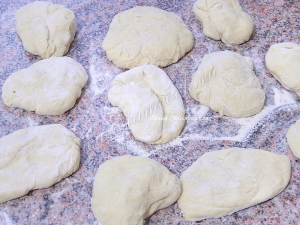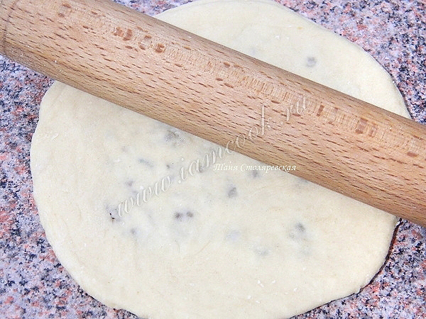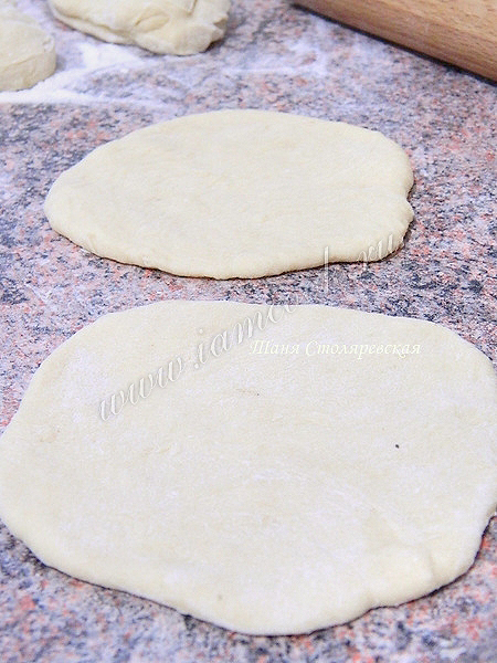 Из кусочков теста раскатываем тонкие лепешки, приблизительно одного размера.