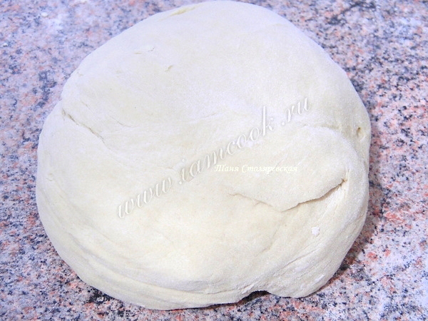 Постепенно добавляем муку и замешиваем упругое тесто. Я использовала муку высшего и первого сортов.