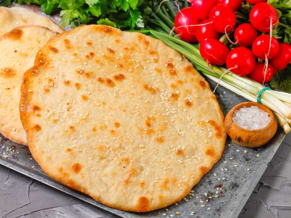 Пресная лепёшка в духовке создается буквально за 1 час, если вы решите приготовить тесто с добавлением дрожжей, и за 30 минут, если вы замесите тесто без них. Различие будет лишь в том, что дрожжевые лепешки дольше останутся мягкими, пышными и нежными, они с легкостью будут рваться при делении. А вот бездрожжевые лепешки станут хрустящими, будут ломаться на части, как печенье, поэтому в этом рецепте в тесто будут добавлены дрожжи.
