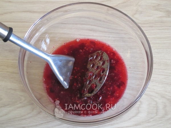 Ягоды раздавите толкушкой или пробейте блендером.