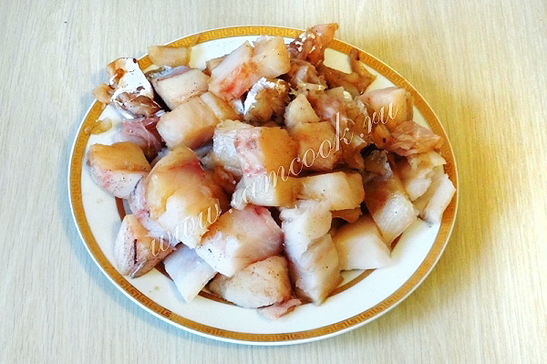 2. Филе нарезать примерно одинаковыми кусочками. Поперчить, залить соевым соусом и дать промариноваться минут 30-40.