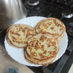 Только тесто развела дополнительно водой, так как первые блинчики вышли толстые. Воды взяла примерно полстакана.