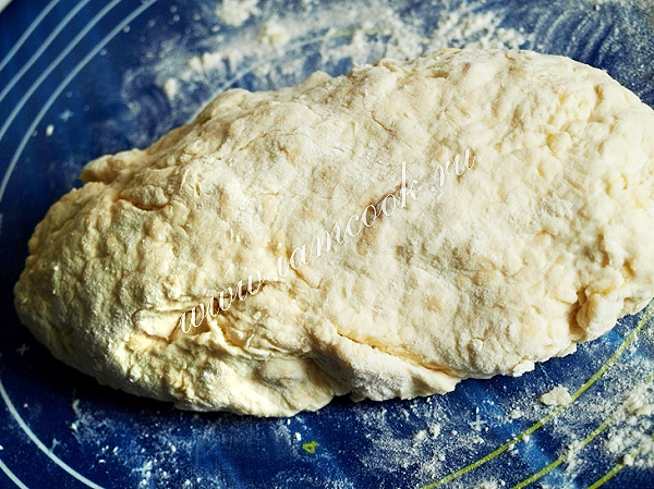 Мешать сначала ложкой, затем на столе подсыпая муку. Тесто получится не липкое и очень податливое.