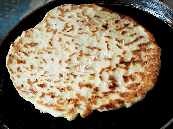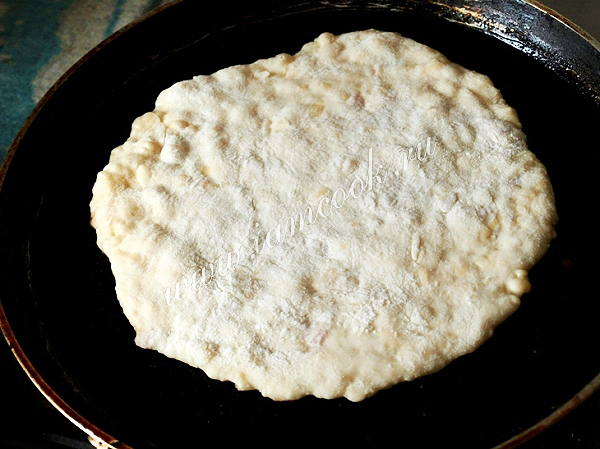 В сковороде разогреть растительное масло.Обжарить лепёшку сначала с одной стороны.